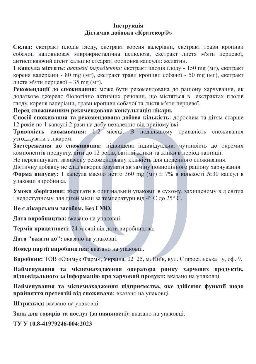 Кратекор (капсули №30)