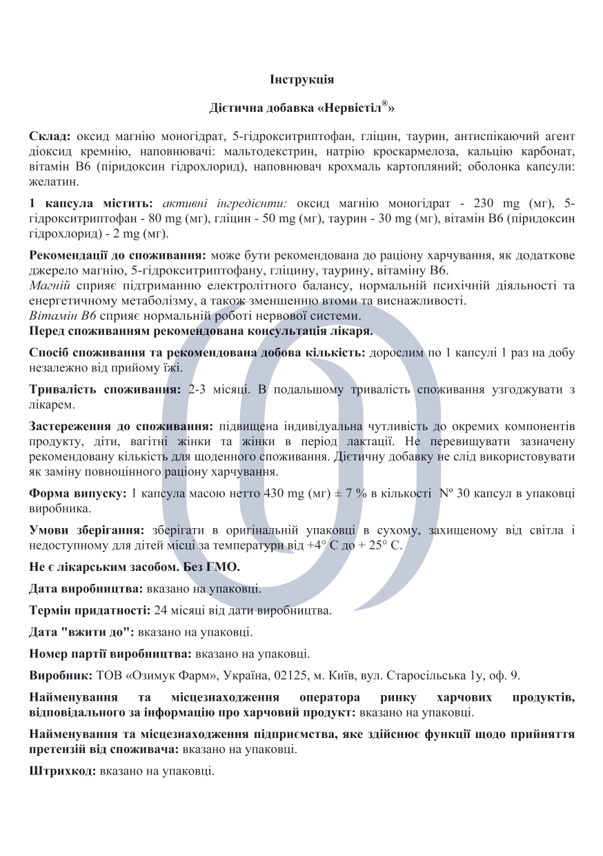 Нервістіл (капсули №30)