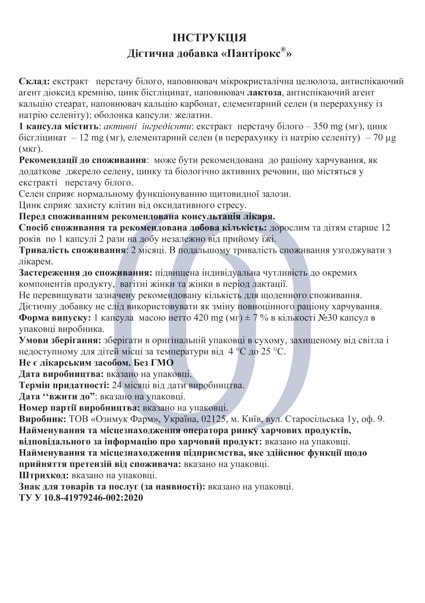 - Джерело селену, цинку та біологічно активних речовин, що містяться у екстракті перстачу білого.